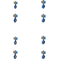 Przepustnica bezkołnierzowa SYLAX z napędem pneumatycznym SOCLA dwustronnego działania (ciśnienie powietrza zasilającego 6 bar), dysk: GGG40 epoksyd., wykładzina: EPDM, korpus: GG25 epoksyd., Pnom 1,6 MPa, tmax=120 st.C