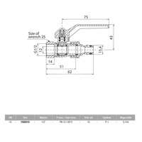 Zawór kulowy VALVEX Spin mosiądz niklowany, PN25 1/2'' x 3/4'' GW, uchwyt: dźwignia