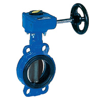 Przepustnica bezkołnierzowa SYLAX z przekładnią ślimakową, dysk: AISI316, wykładzina: EPDM, korpus: GGG40 epoksyd., Pnom 2,5 MPa, tmax=90 st.C DN100