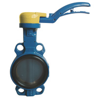 Przepustnica bezkołnierzowa SYLAX z napędem ręcznym dźwigniowym, dysk: AISI316., wykładzina: EPDM, korpus: GGG40 epoksyd., Pnom 2,0 MPa, tmax=90 st.C DN50