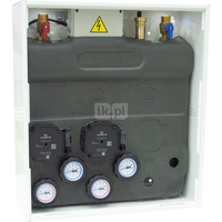 Grupa pompowa jednodrogowa (25/70) bezposredniego: zawór zwrotny, kulowe zawory odcinające, termometr, kieszeń sondy. Przyłącze
