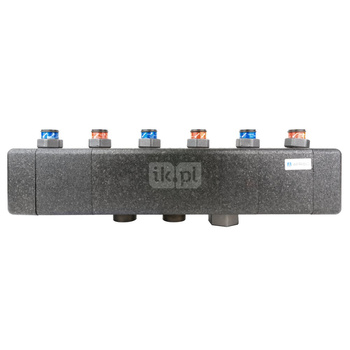 Rozdzielacz do ogrzewania podłogowego GIACOMINI R553FP 6-obieg. technopolimer 1'' x eurocono 3/4'' + przepływomierz + termometr + zawór napełn/spust + odpowietrznik + zawór przy przyłączu