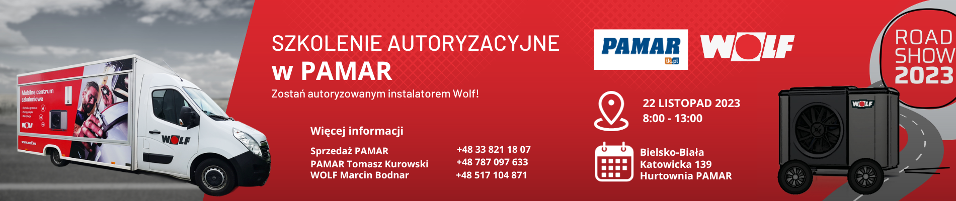Szkolenia autoryzacyjne to kluczowy element rozwoju każdego profesjonalisty w branży grzewczej. Marka WOLF od lat przykłada ogromną wagę do podnoszenia kwalifikacji swoich partnerów, dlatego ma przyjemność zaprosić wszystkich zainteresowanych instalatorów na specjalne szkolenie autoryzacyjne, które odbędzie się 22 listopada w hurtowni Pamar przy ulicy Katowickiej 139 w Bielsku-Białej.