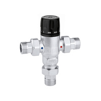 Regulowany termostatyczny zawór mieszający z zaworami zwrotnymi, filtrami na wlotach i złączkami zaciskowymi O 15 30-65 st. C