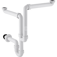 Syfon rurowy Geberit do dwóch umywalek, model oszczędzający przestrzeń, wylot poziomy: d=40mm, G=1 1/2″, Biały-alpin