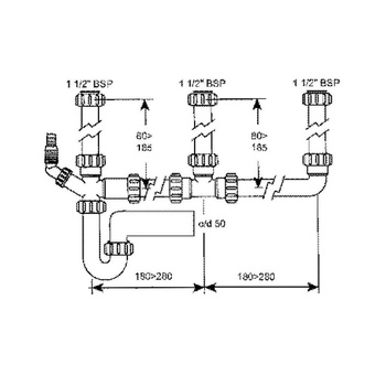 Syfon zlewozmywakowy rurowy 11/2"x50mm z podłączeniem pralki lub zmywarki