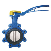 Przepustnica z otworami gwintowanymi SYLAX z napędem ręcznym dźwigniowym, dysk: AISI316, wykładzina: NBR, korpus: GGG40 epoksyd., Pnom 1,6 MPa, tmax=85 st.C DN80