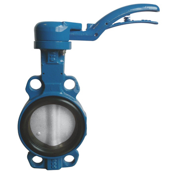 Przepustnica bezkołnierzowa SYLAX z napędem ręcznym dźwigniowym, dysk: AISI316., wykładzina: EPDM, korpus: GGG40 epoksyd., Pnom 2,5 MPa, tmax=90 st.C DN100