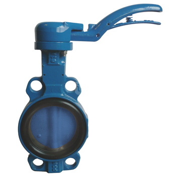 Przepustnica bezkołnierzowa SYLAX z napędem ręcznym dźwigniowym, dysk: AISI316, wykładzina: FKM, korpus: GGG40 epoksyd., Pnom 1,0 MPa, tmax=180 st.C DN 65