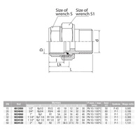 Złączka (śrubunek) prosta śrutowana z oringiem (wersja krótka) VALVEX TWIST, 1'' (GZ x GW)