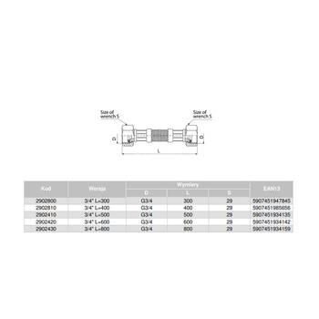 Wąż przyłączeniowy elastyczny VALVEX Viper Plus z oplotem (stal nierdzewna), GW x GW, 3/4'' x 3/4'', długość 400 mm