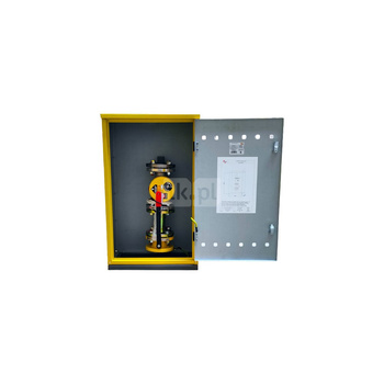 Punkt redukcyjno-pomiarowy na 5-6 gazomierzy G4/G6, w pionie, w skrzynce metalowej - żółty