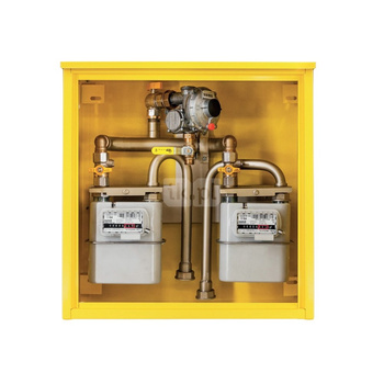 Punkt redukcyjno-pomiarowy na 2 gazomierze G4/G6, w pionie, w skrzynce z laminatu 670x870x250 - żółty