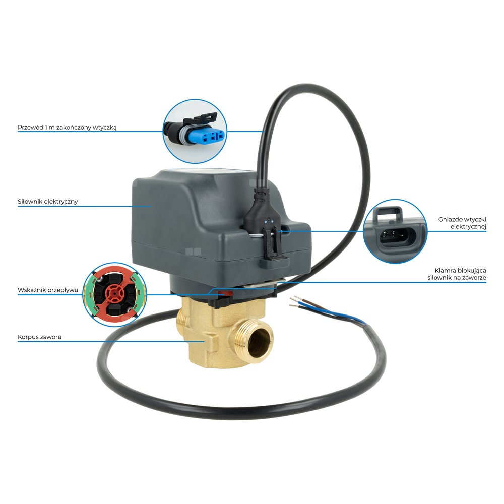 - W połączeniu ze sterownikiem lub termostatem automatyzuje pracę instalacji.