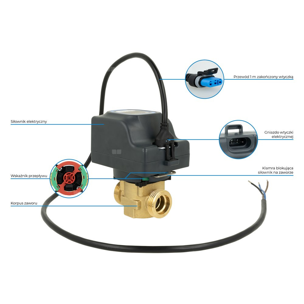 - W połączeniu ze sterownikiem lub termostatem automatyzuje pracę instalacji.