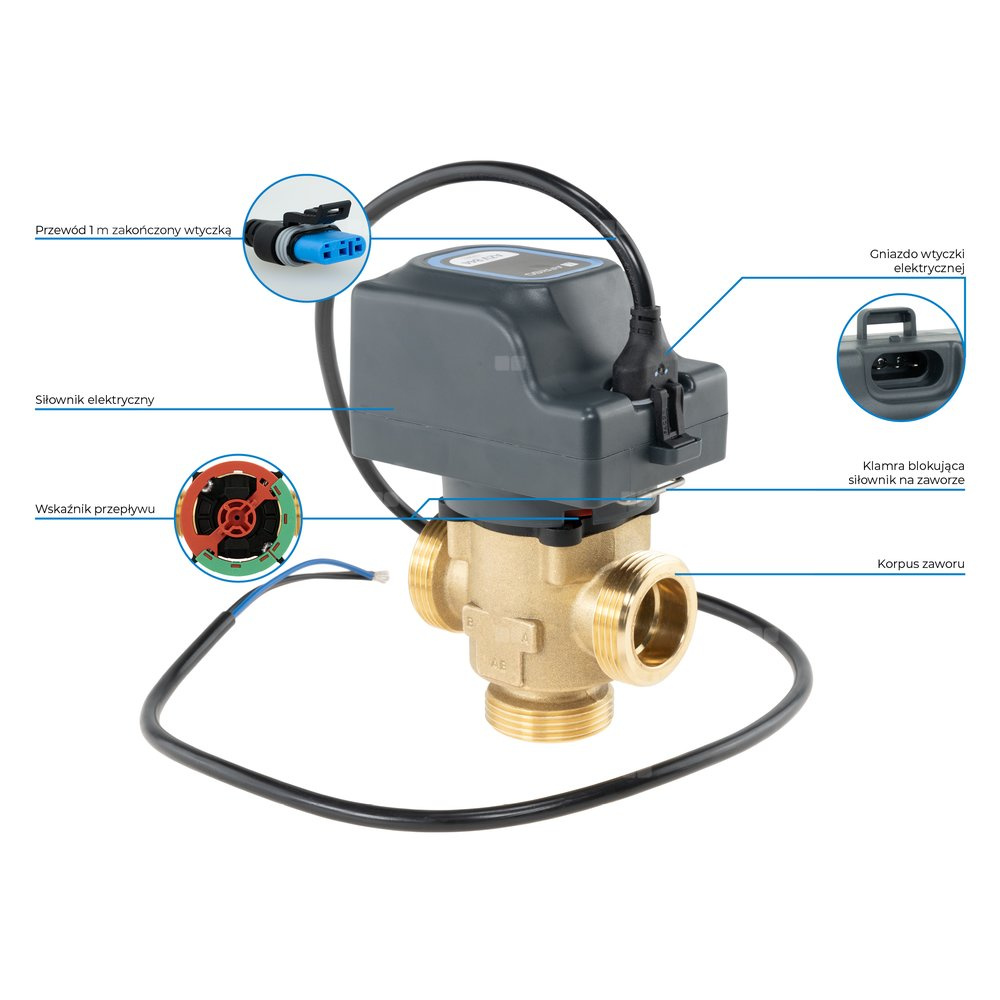 - W połączeniu ze sterownikiem lub termostatem automatyzuje pracę instalacji.