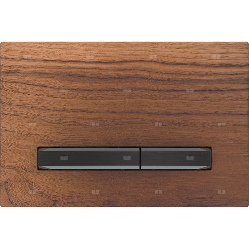 Przycisk uruchamiający Geberit Sigma50, przedni, amerykański orzech włoski, przyciski: czarny chrom, prostokątny