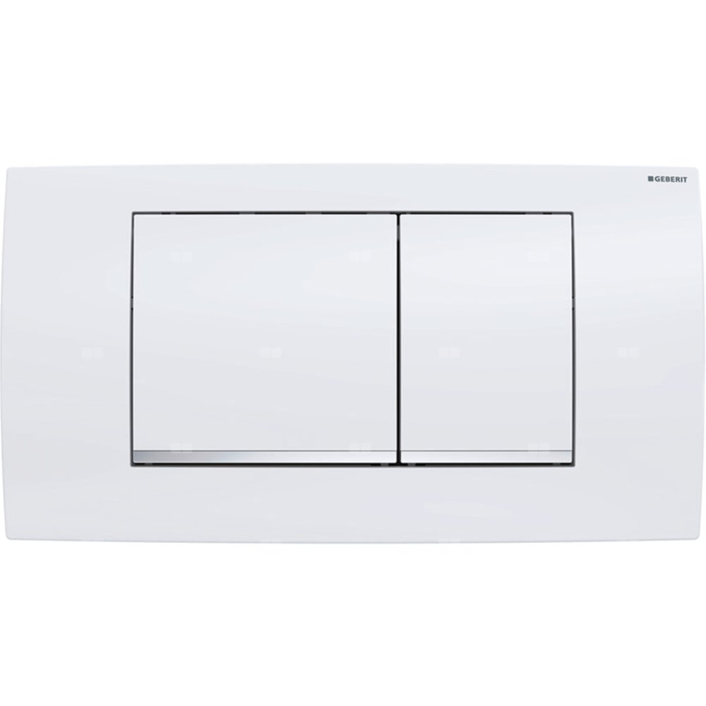 Przycisk uruchamiający Geberit Twinline30 do spłukiwania dwudzielnego: Płyta i przyciski: białe, Paski ozdobne: chrom błyszczący