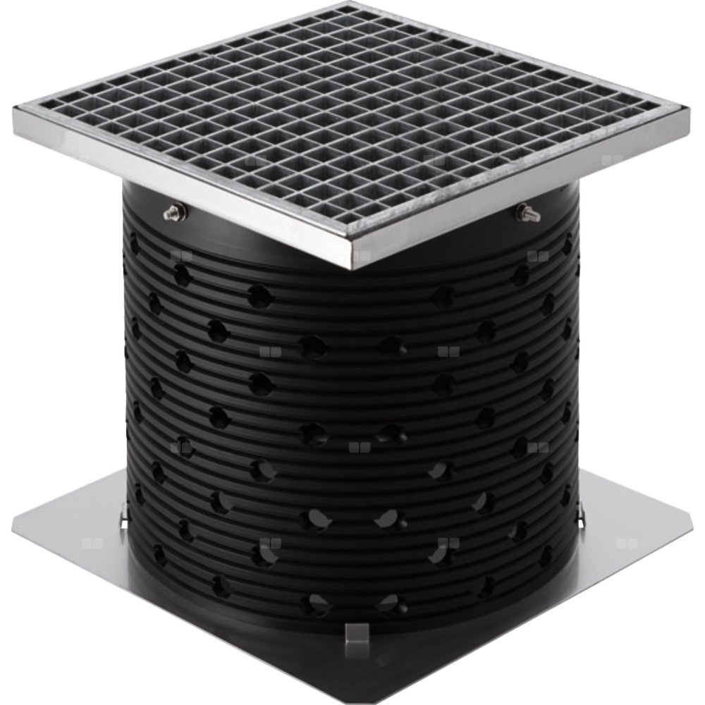 Kratka wlotowa Deska sedesowa z ramką kratki Płyta odciążająca Studzienka rurowa wpustu tarasowego, z możliwością skrócenia Elementy mocujące