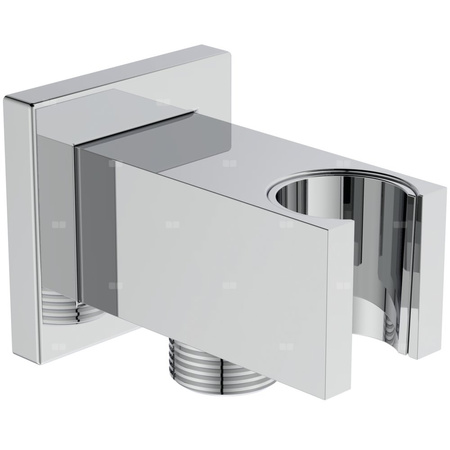 Zawieszenie słuchawki z przyłączem kątowym. Metalowa rozeta. Kształt prostokątny. Wykonane z metalu. Podłączenia G 1/2.