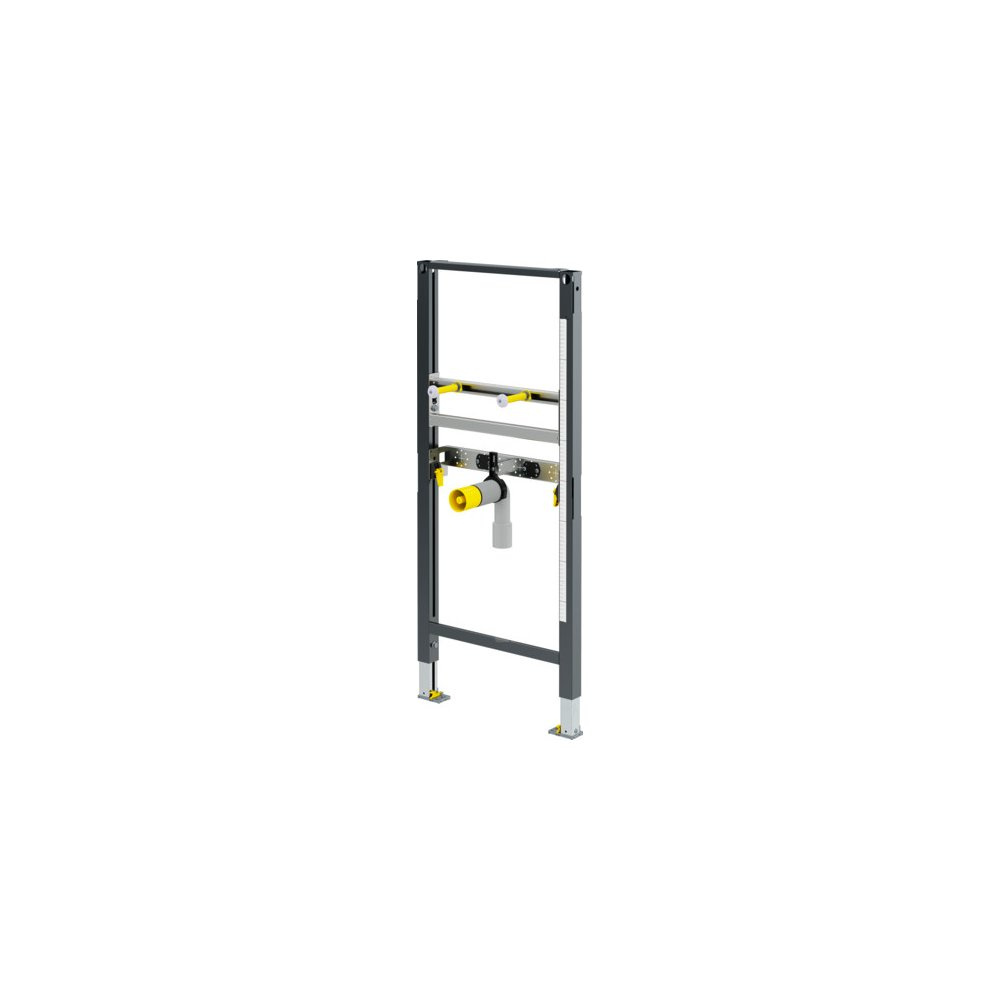 Prevista Dry-stelaż do umywalki, 1120 mm, przyłącza z regulacją wysokości. Przeznaczenie: umywalka z armaturą jednootworową, do montażu podtynkowego zamawiać osobno: Prevista Dry-zestaw mocujący nr wzoru 8570.36, stal, kompatybilne z Prevista Dry Plus. Wyposażenie: Rama malowana proszkowo (40×40), mocowanie ceramiki z regulacją wysokości, przyłącza do regulacji wysokości z zaciskiem z szybką blokadą (z miarką na ramie), materiał do mocowania, hamulec do ustawienia wysokości zabudowy, łuk odpływowy z możliwością skrócenia DN40/50 z nyplem gumowym DN50/30. Dane techniczne: maks. obciążenie 150 kg, nr wzoru 8535, nr kat. 776 183, H zab.: 1120 B: 500