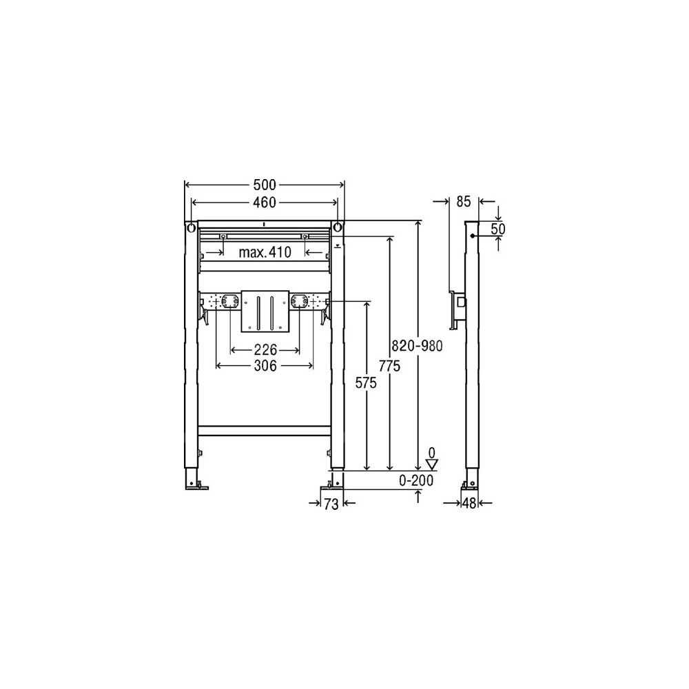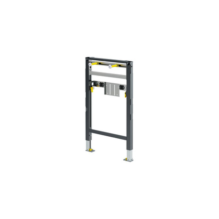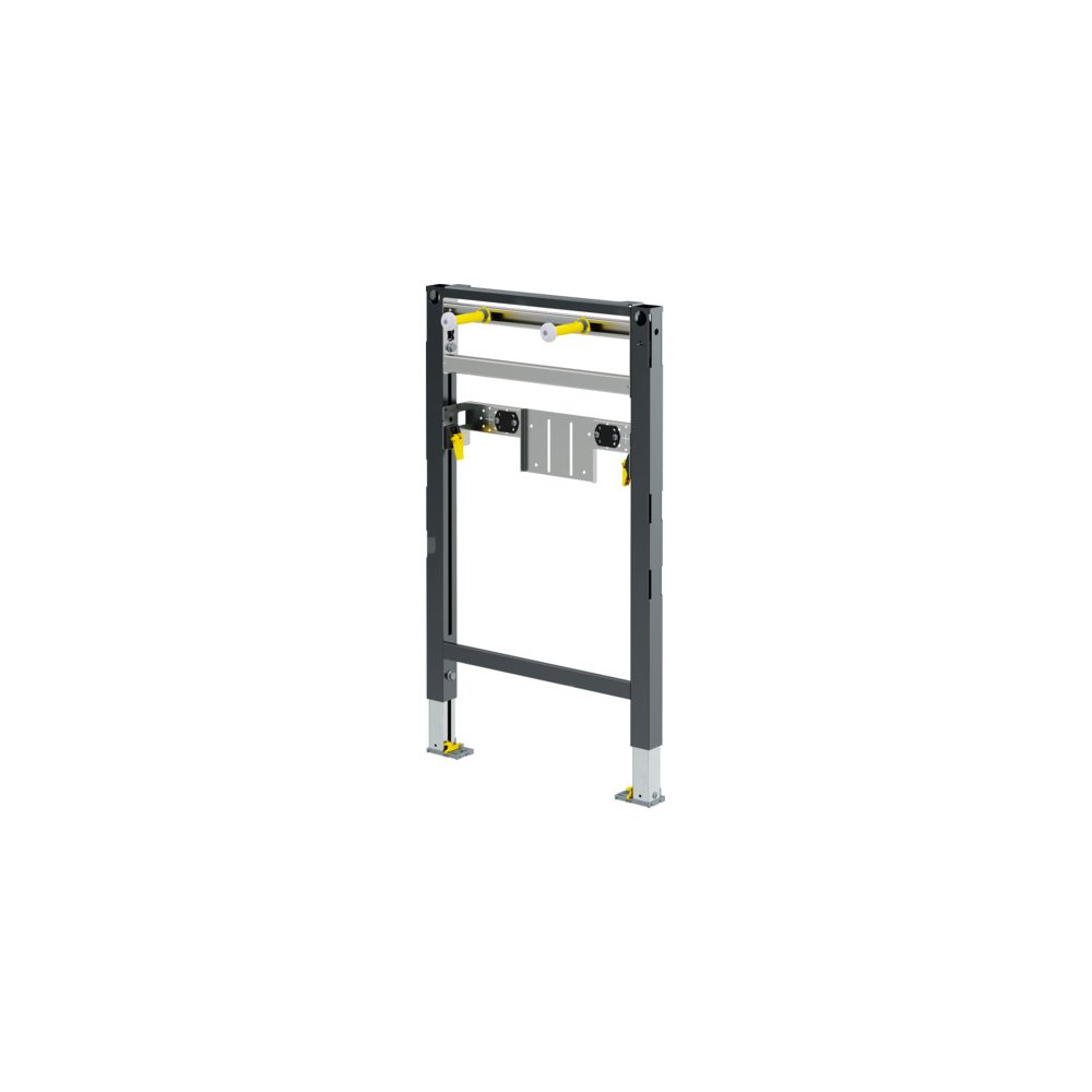 Prevista Dry-stelaż do umywalki, dla niepełnosprawnych, 820–980 mm, do montażu podtynkowego zamawiać osobno: Prevista Dry-zestaw mocujący nr wzoru 8570.36, stal, kompatybilne z Prevista Dry Plus. Wyposażenie: Rama malowana proszkowo (40×40), mocowanie ceramiki z regulacją wysokości, przyłącza z zaciskiem z szybką blokadą z regulacją wysokości, uniwersalny uchwyt syfonu podtynkowego, materiał do mocowania, hamulec do ustawienia wysokości zabudowy. Dane techniczne: maks. obciążenie 150 kg. Wskazówka: Uniwersalny uchwyt do zamontowania syfonu podtynkowego z chromowaną płytą maskującą (nr wzoru 5633.1)lub syfonu podtynkowego z białą płytą maskującą (nr wzoru 5633.2)!, nr wzoru 8536.31, nr kat. 776 251, H zab.: 820-980 B: 500