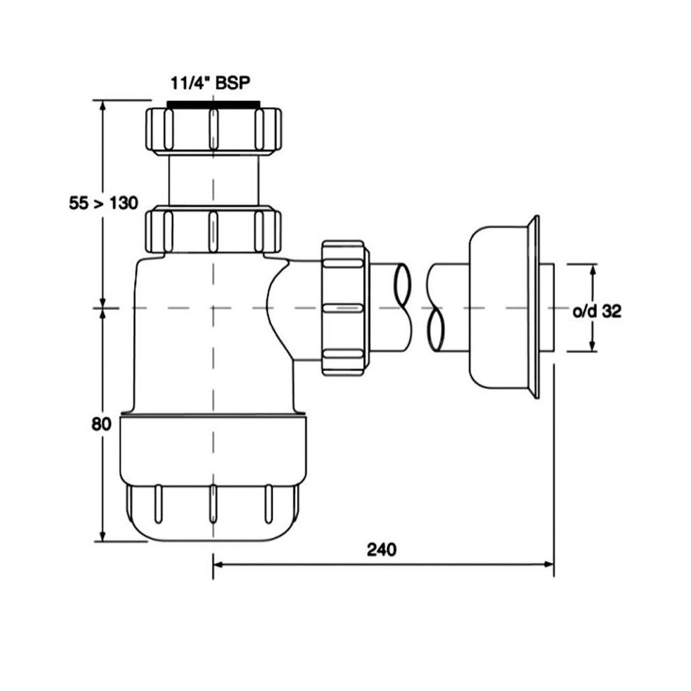 Wymiary: 1.1/4"x32 mm – standardowy rozmiar do większości umywalek.