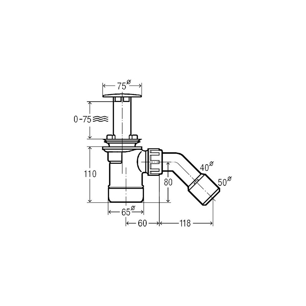 Duoplex-odpływ nr wzoru 6934 fi: 75 poziom wody: 90 DN: 40/50 do brodzików z otworem odpływowym fi 52