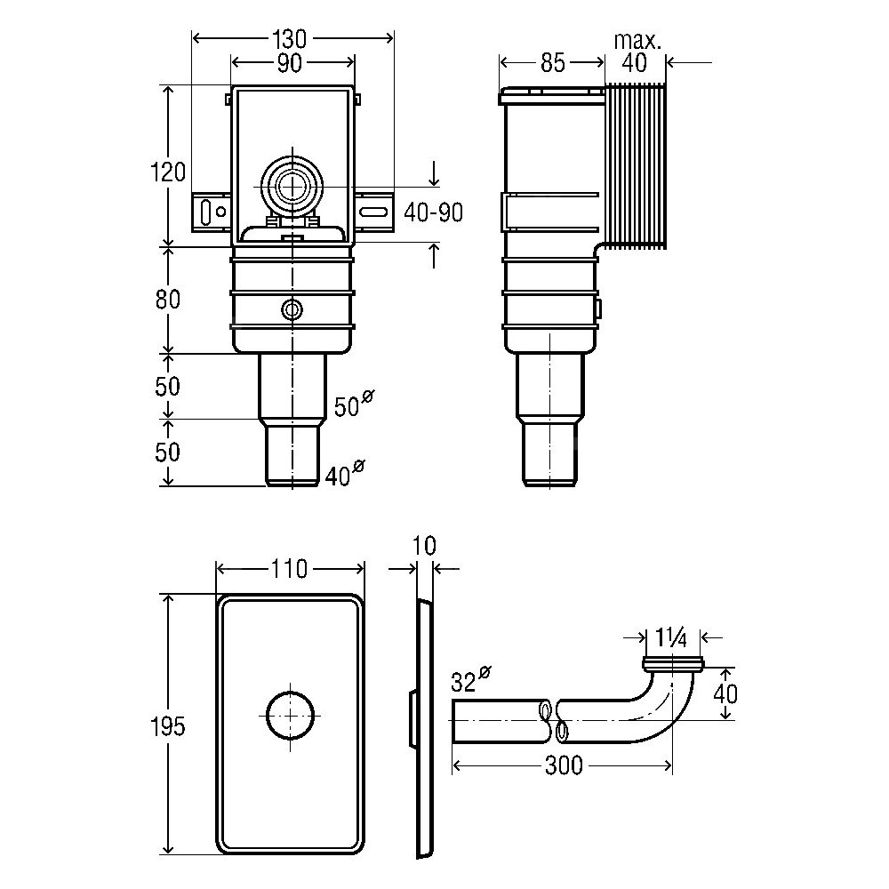 Syfon, przeznaczenie: montaż podtynkowy, 1 1/4 x 50 / 40, tworzywo sztuczne / chrom, nr wzoru 5633.1PL