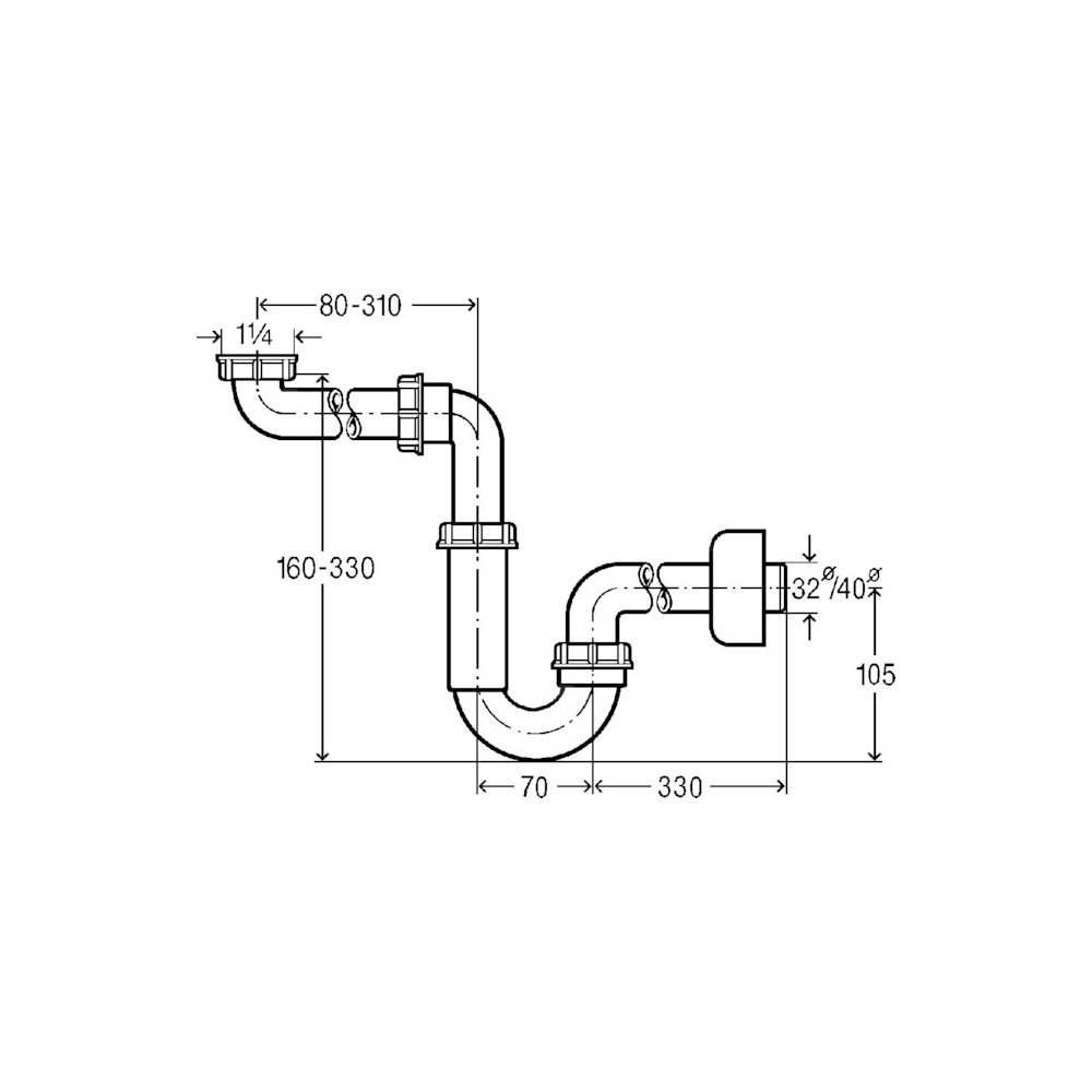 Syfon rurowy tworzywo sztuczne, z możliwością pozyskania dodatkowej przestrzeni, nr wzoru 5729 G: 1¼ DN: 40