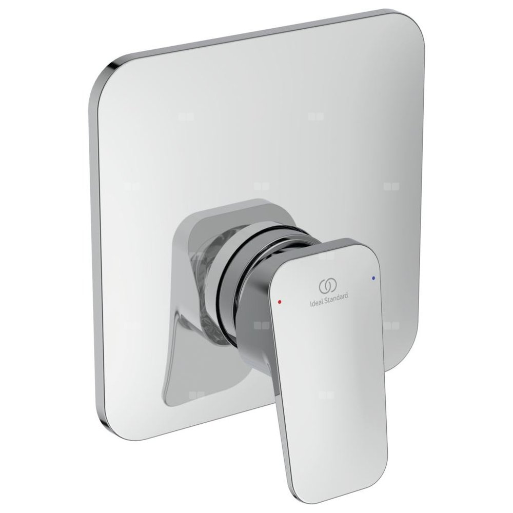 Głowica, 47 mm, z ograniczeniem temperatury wody. Metalowy uchwyt z oznaczeniem wody: ciepła/zimna. Rozeta maskująca z tworzywa, chromowana. W komplecie zestaw montażowy.