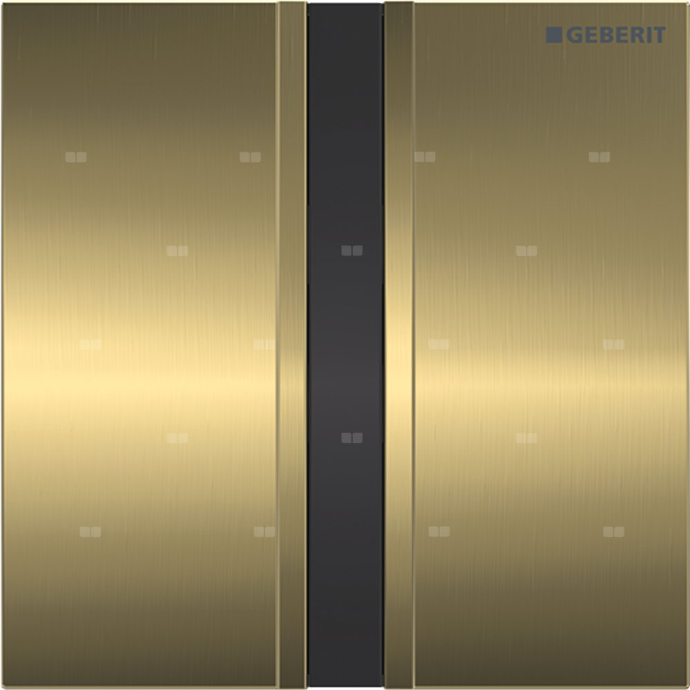 Płytka przykrywająca z ryglem zabezpieczającym Precyzyjne wykrywanie odległości użytkownika przez czujnik IR Czujnik podczerwieni z funkcją samoregulacji Wykrywanie za pomocą podczerwieni z funkcją wytłumienia tła Możliwość regulacji trybu hybrydowego oszczędzającego wodę Możliwość regulacji czasu spłukiwania Możliwość regulacji spłukiwania okresowego Dynamiczne ustawienie czasu spłukiwania Możliwość regulacji spłukiwania wstępnego Możliwość przestawienia na pracę z pisuarem z pokrywą Jednokrotne spłukanie po podłączeniu do prądu Zasilany bateryjnie Możliwość zmiany ustawień oraz odczytu statystyk za pomocą pilota serwisowego Geberit Service-Handy Ustawienia i obsługa urządzenia za pomocą urządzenia mobilnego przez zintegrowany interfejs Bluetooth® Kompatybilny z aplikacją Geberit Control Ostrzeżenie o słabej baterii Funkcja zamykania zaworu w przypadku wyczerpanej baterii Możliwość wyłączenia uruchamiania spłukiwania Możliwość zredukowania ilości spłukiwanej wody poprzez zestaw montażowy regulatora przepływu do 0,5 l na spłukanie Poziom hałasu armatury Grupa II, zgodnie z DIN 4109 Do automatycznego uruchamiania spłukiwania pisuarów Do stelaży podtynkowych Geberit do pisuaru z uruchamianiem z przodu Do montażu w skrzynkach montażowych do zaworów spłukujących Geberit do pisuaru (produkowanych od 2009 roku) Kolor główny: W kolorze mosiądzu Powierzchnia: Szczotkowany, powlekany easy-to-clean