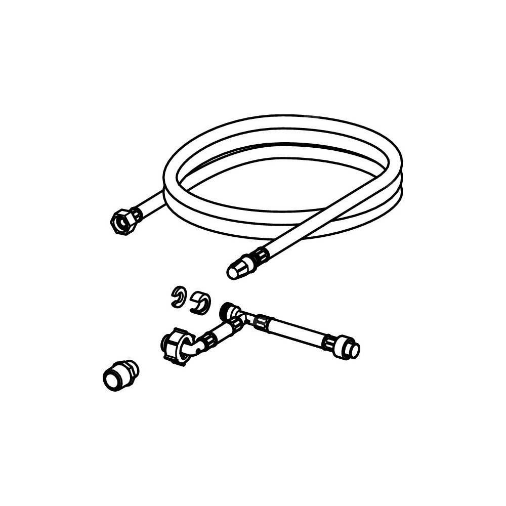 Zestaw przyłączeniowy, przeznaczenie: podwieszane WC myjące, spłuczka podtynkowa 3H, spłuczka podtynkowa 3L, stal nierdzewna, wyposażenie, trójnik przyłączeniowy, wąż zbrojony, nypel redukcyjny ½–⅜, wskazówka: nie nadaje się do stelaży WC ze skrzynką przyłączeniową WC!, nr wzoru 8570.70
