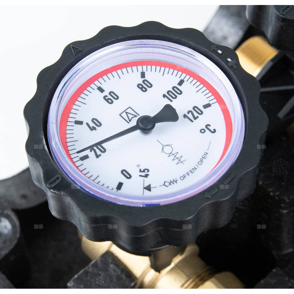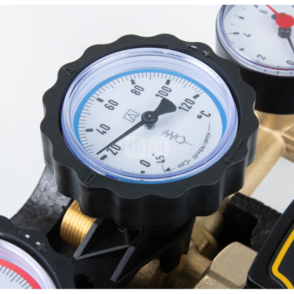 Grupa bezpieczeństwa z zaworem bezpieczeństwa o ciśnieniu otwarcia 6 bar.