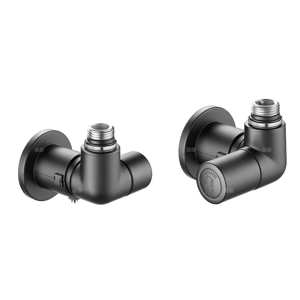 HIGH-STYLE para zaworów dekoracyjnych 3-osiowych. Przyłącze centralne Zestaw zawiera: - 3-osiowy zawór termostatyczny z pokrętłem przystosowany do montażu głowicy termostatycznej kod 200015; - 3-osiowy zawór odcinający; - dwie maskownice do montażu na ścianie i klucz imbusowy. Do użycia ze złączkami z serii 437, 447, 681 i 679. podłącznie rury: 23 p. 1,5, wlot, prawy, Podłączenie do złączek Caleffi. podłączenie grzejnika: G 1/2" A (ISO 228-1) GZ, wylot, prawy. Maksymalne ciśnienie pracy: 10 bar. Zakres temperatury medium: 5–100 °C. Wykończenie: czarny (czarna, czarne). Kv zawór: 1,27 m³/h. Materiał: mosiądz.