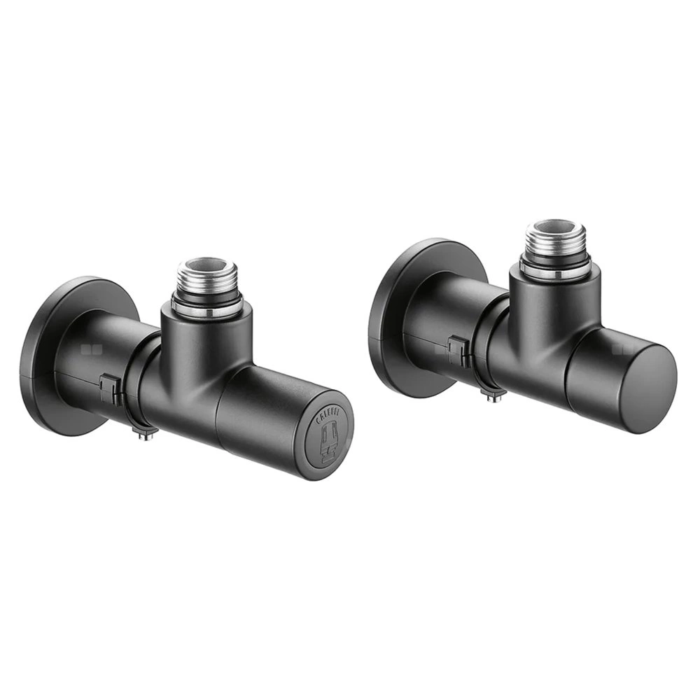 HIGH-STYLE para zaworów dekoracyjnych Zestaw zawiera: - kątowy zawór termostatyczny z pokrętłem przystosowany do montażu głowicy termostatycznej kod 200015; - kątowy zawór odcinający; - dwie maskownice do montażu na ścianie i klucz imbusowy. Do użycia ze złączkami z serii 437, 447, 681 i 679. podłącznie rury: 23 p. 1,5, wlot, Podłączenie do złączek Caleffi. podłączenie grzejnika: G 1/2" A (ISO 228-1) GZ, wylot. Maksymalne ciśnienie pracy: 10 bar. Zakres temperatury medium: 5–100 °C. Wykończenie: czarny (czarna, czarne). Kv zawór: 2,0 m³/h. Materiał: mosiądz.