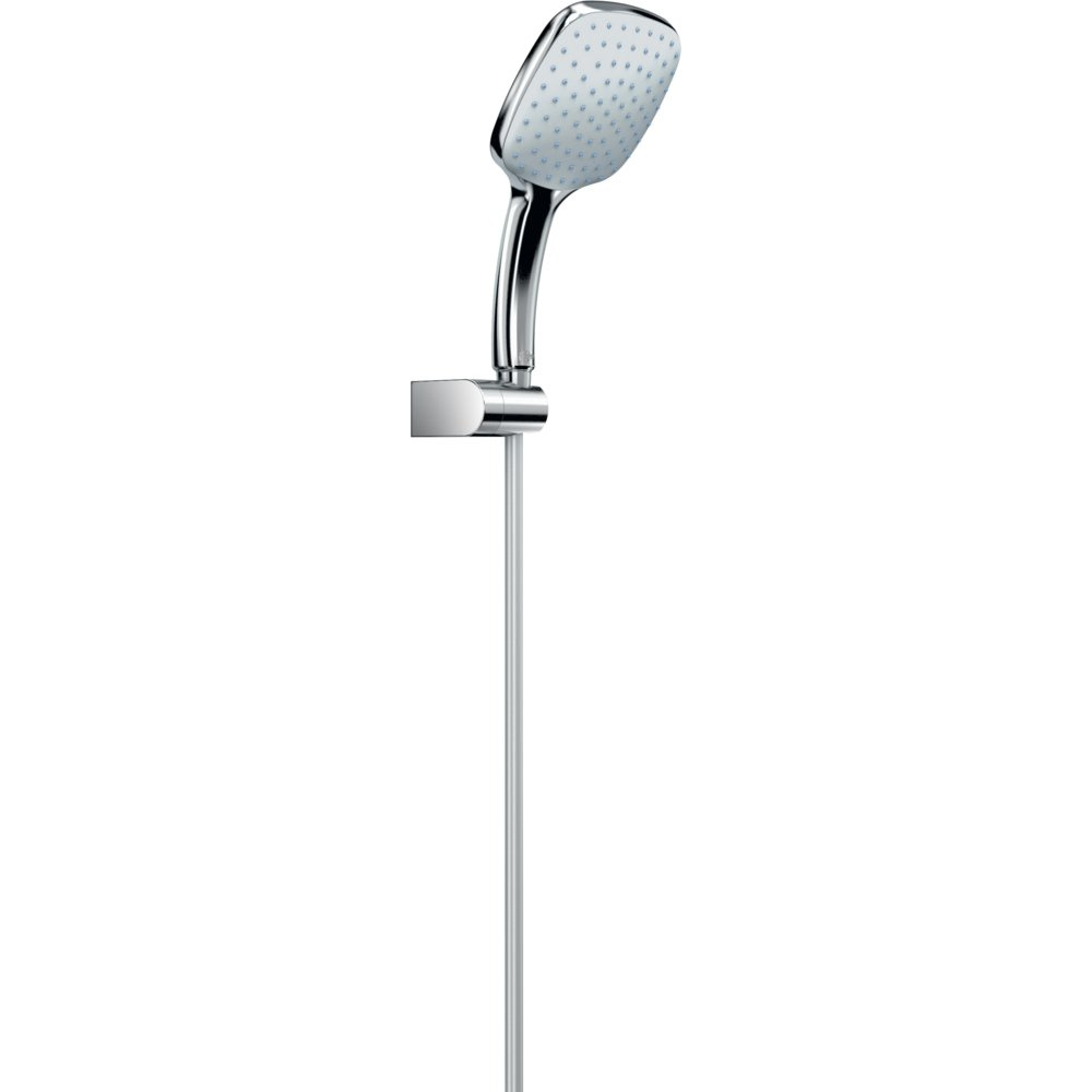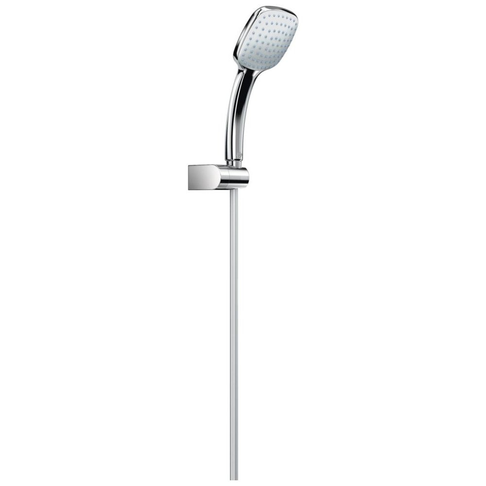 Zestaw natryskowy M1, jednofunkcyjny, 100 mm. Słuchawka prysznicowa średnicy 100 mm. Gumowe końcówki dysz zapobiegające osadzaniu się kamienia. Ogranicznik przepływu wody do 8 l/min. Wąż natryskowy Idealflex, 1750 mm. Ruchomy uchwyt ścienny z tworzywa. Logo Ideal Standard.
