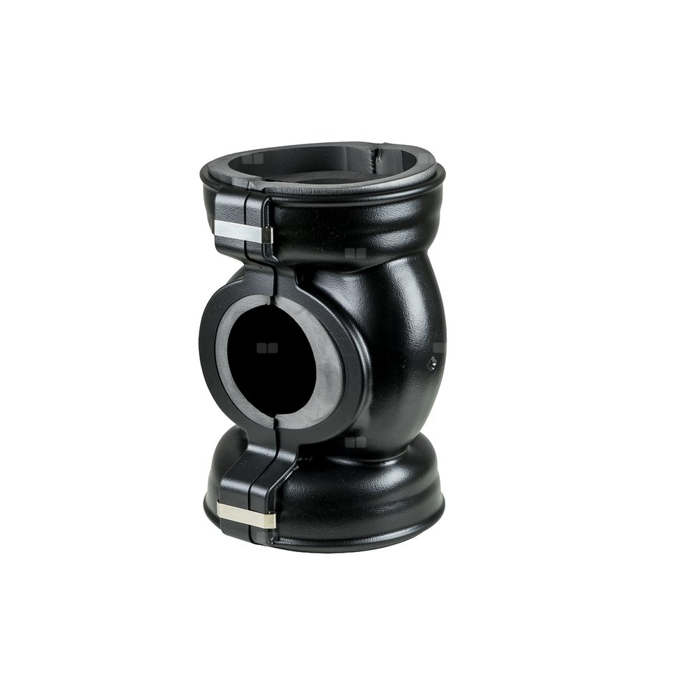 Zestaw akcesoriów składa się z dwóch korpusów poliuretanowych (PUR) oraz metalowych zacisków zapewniających szczelny montaż.