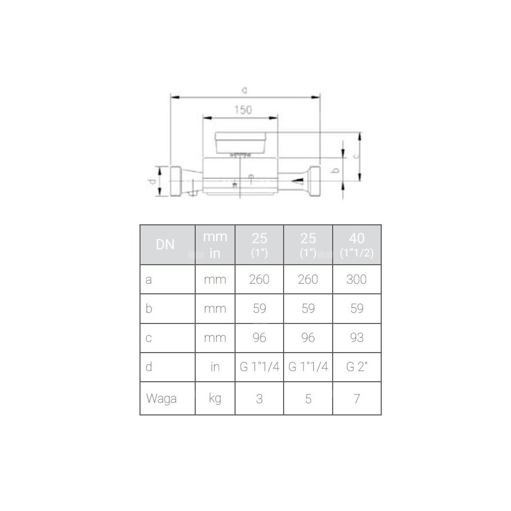 Model HYDROSONIS UP 2 1/2'' QN-25,0 m3/h DN 65 P lub Z KOŁNIERZ