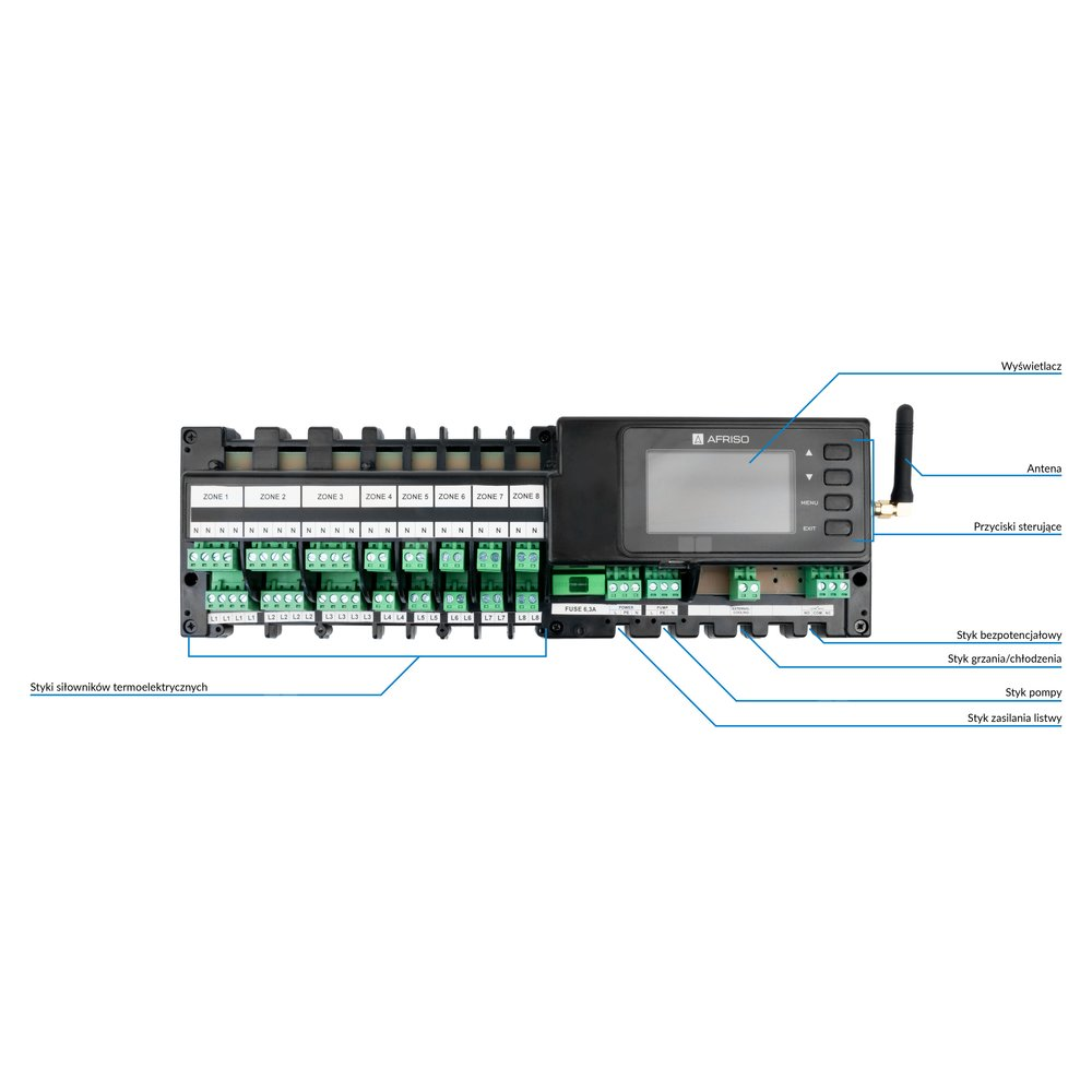 Umożliwa podłączenie do 22 siłowników termoelektrycznych.