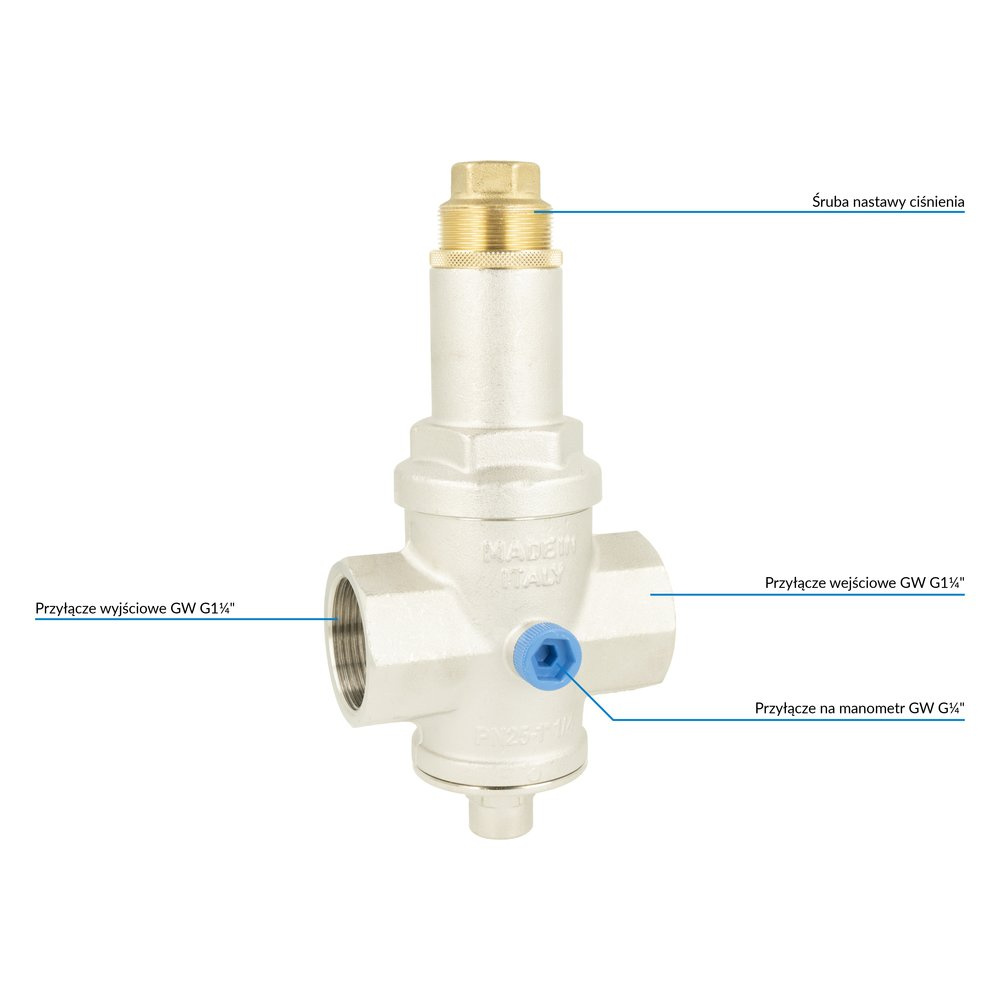 Obniża wysokie ciśnienie wodociągowe do wartości ustalonej.