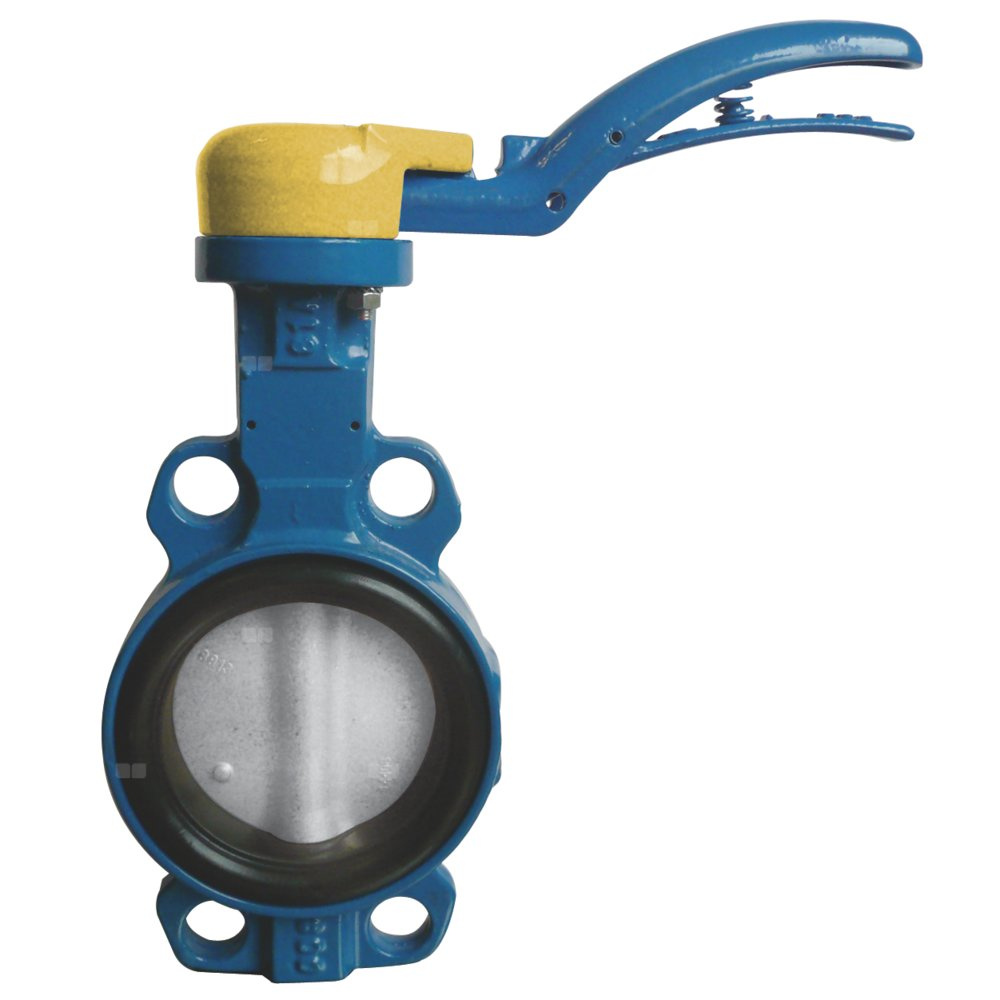 Przepustnica bezkołnierzowa SYLAX GAS z dźwignią ręczną, dysk: AISI316, wykładzina: NBR, korpus: GGG40 epoksyd., Pnom 0,6 MPa, tmax=60 st.C DN65
