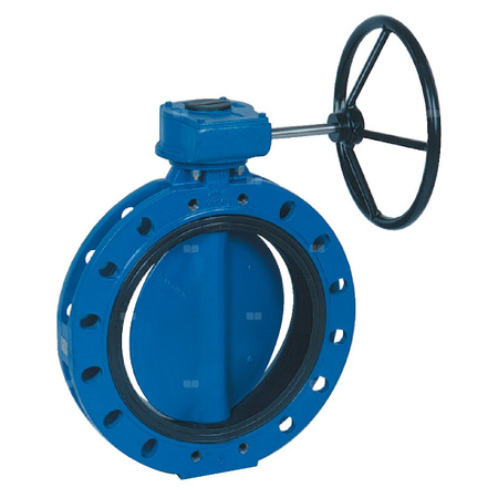 Przepustnica kołnierzowa SYLAX z przekładnią ślimakową, dysk: GGG40 epoksyd, wykładzina: NBR, korpus: GGG40 epoksyd., Pnom 1,0 MPa, tmax=85 st.C DN350