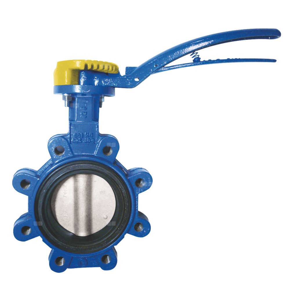 Przepustnica z otworami gwintowanymi SYLAX GAS z dźwignią ręczną, dysk: AISI316, wykładzina: NBR, korpus: GGG40 epoksyd., Pnom 0,6 MPa, tmax=60 st.C DN32