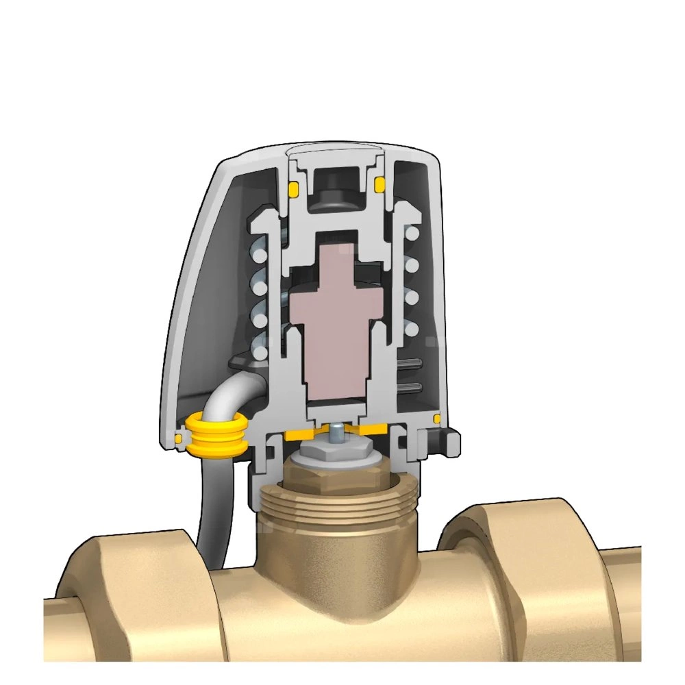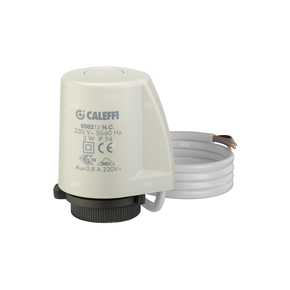Siłownik termoelektryczny. Z mikroprzełącznikiem pomocniczym Ze wskaźnikiem pozycji otwarcia. Montaż przy użyciu szybkozłącza, z przyłączem wciskowym. Normalnie zamknięty. Do zaworów serii 338, 339, 401, 402, 425, 426, 421, 422, 455, 456, 220, 221, 222, 223, 224, 225, 226, 227, 230, 231, 232, 233, 234, 237, 676, 677, 678 i rozdzielaczy serii 670, 671, 668.S1,664, 665. Zakres temperatury otoczenia: 0–50 °C. Zasilanie elektryczne: 230 V (AC). Pobór mocy: 3 W. Stopień ochrony: IP 54. Długość przewodu zasilająego: 0,80 m. Styk mikroprzełącznika pomocniczego (230 V): 0,8 A. Prąd rozruchowy: ≤ 1 A.