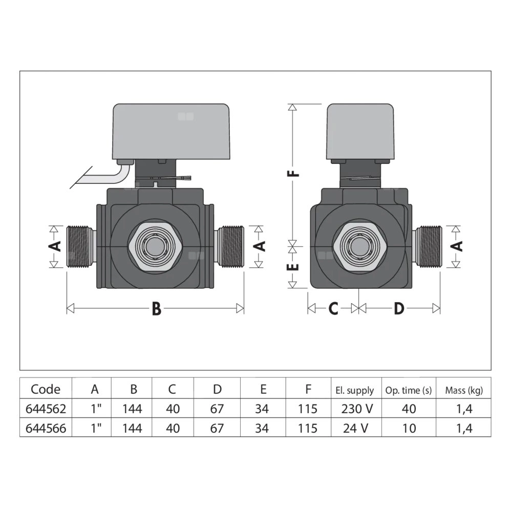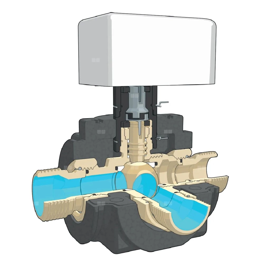 Trójdrożny zawór kulowy z siłownikiem 1", czas zadziałania 10s