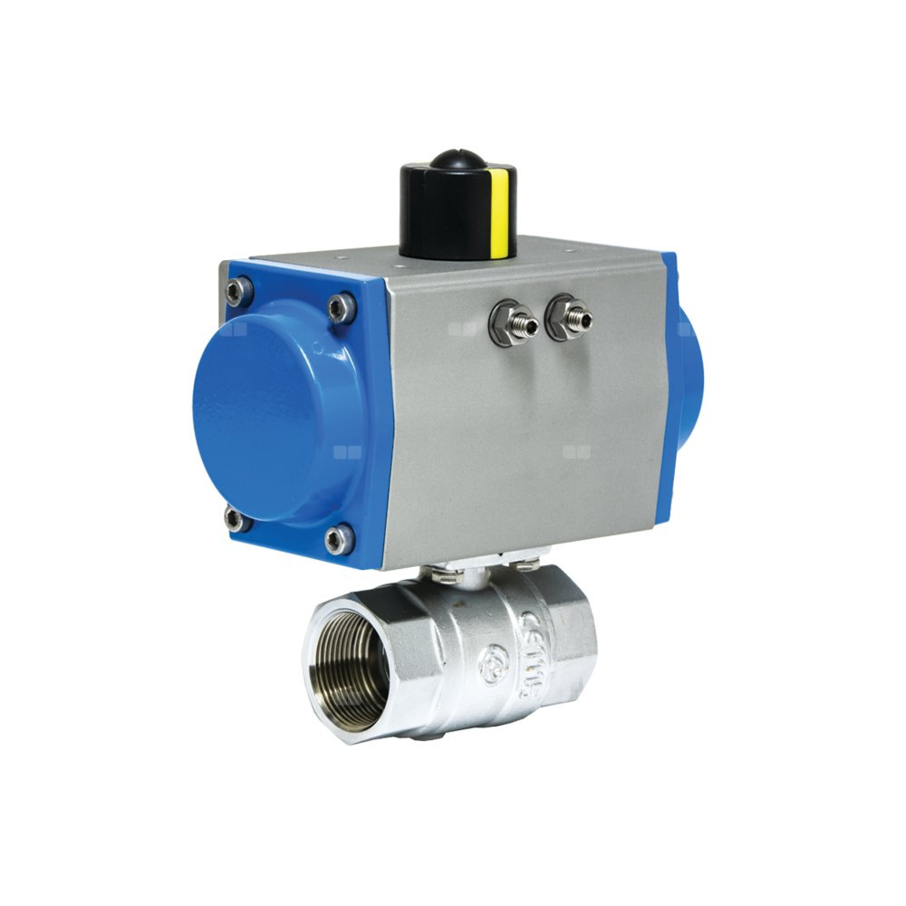 Zawór odcinający kulowy mosiężny, typ PKO gwintowany z napędem pneumatycznym jednostronnego działania, Pnom=2,5MPa, Tmax=180C 1/2"