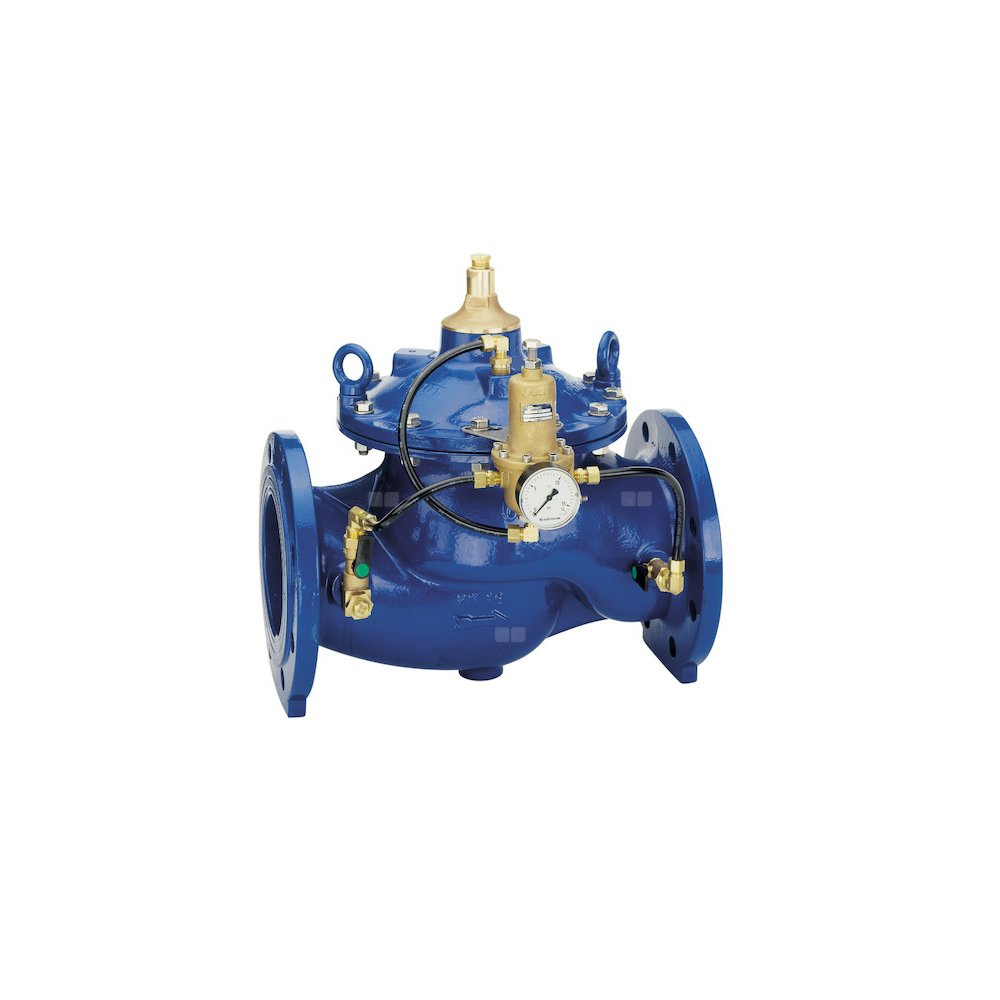 Przy braku ciśnienia zawór jest zamknięty. Po otwarciu zasilania, woda płynie do sekcji wlotowej i wzrastające ciśnienie otwiera zawór, a woda może przepłynąć do części wylotowej. Dzięki precyzyjnemu zaworowi pilotowemu na wlocie zwiększa się ciśnienie w komorze ponad przeponą. Poddana wpływowi ciśnienia wlotowego powierzchnia przepony jest większa od powierzchni grzyba zaworu, który jest pod wpływem tego samego ciśnienia powoduje zamknięcie zaworu. Jeżeli ciśnienie na wejściu osiągnie wartość ciśnienia ustawionego na zaworze pilotowym, zawór pilotowy otworzy połączenie pomiędzy komorą membrany a wylotem. Ciśnienie w komorze przepony spadnie i zawór się otworzy. Jeżeli ciśnienie na wejściu spadnie poniżej ustawionego poziomu otwarcia, zawór pilotowy się zamknie, a rosnące ciśnienie w komorze zamknie zawór.