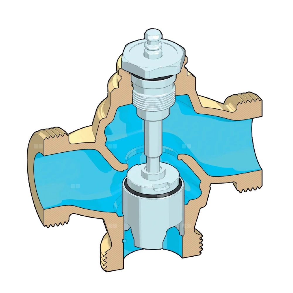 Dwudrożny zawór regulacyjny, gwintowany Charakterystyka stałoprocentowa. Przyłącze: Rp 1 1/4" (EN 10226-1) GW, złączka. Maksymalne ciśnienie pracy: 16 bar. Zakres temperatury medium: 0–100 °C. PN (Ciśnienie nominalne): PN 16. DN: DN 32 (korpus). Kv: 16 m³/h.