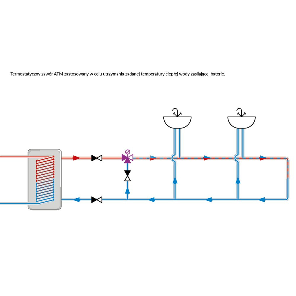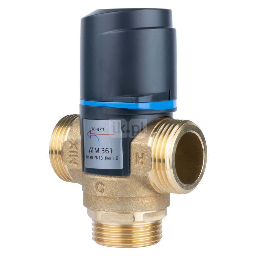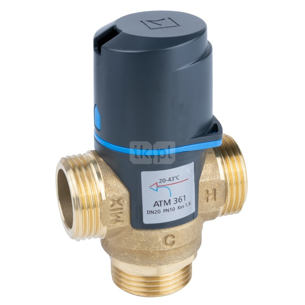 Zawory termostatyczne mieszajace ATM powinny być stosowane wszędzie tam, gdzie niezbędna jest ochrona przed poparzeniem oraz wskazana jest szybka reakcja na zmiany temperatury i ciśnienia wody. Zawory ATM umożliwiają bezpieczne przegrzewanie wody w zasobnikach c.w.u. w celu ochrony przed bakteriami Legionelli, bez narażania użytkowników na poparzenie. Funkcja "bez oparzeń" powoduje zablokowanie dopływu wody ciepłej w wypadku awarii dopływu wody zimnej. W instalacjach grzewczych, np. ogrzewania podłogowego zawory ATM mogą zastępować rozbudowane i kosztowne układy regulacji. Pod plastikową pokrywką, chroniącą przed przypadkową zmianą nastawy, znajduje się pokrętło do ustawienia temperatury wody zmieszanej. Zawory termostatyczne ATM podczas pracy nie wymagają czynności konserwacyjnych i mogą być montowane w dowolnej pozycji. Przeznaczone są do pracy z czystą wodą lub wodą zawierającą maksymalnie 50% glikolu. Wykonane są z mosiądzu DZR.